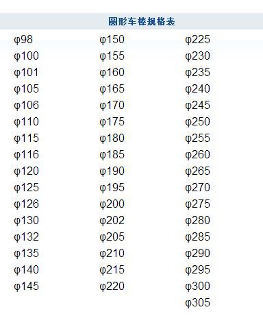 圆形车棒规格表