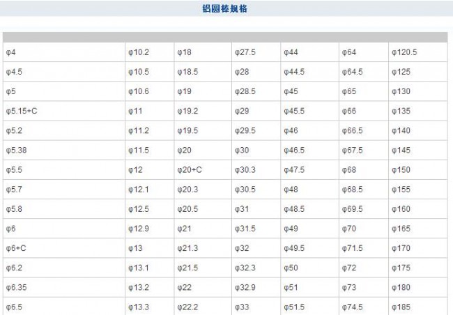 铝圆棒规格