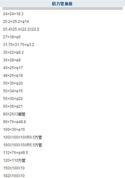 铝方管规格