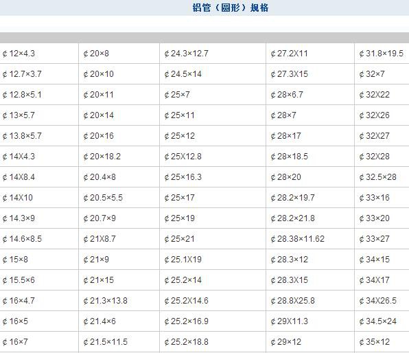 铝管(圆形)规格